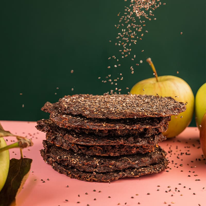 Паляничка зі свинячої печінки, в‘яленого яблука, клітковини льону, розмарину та зерен чіа.